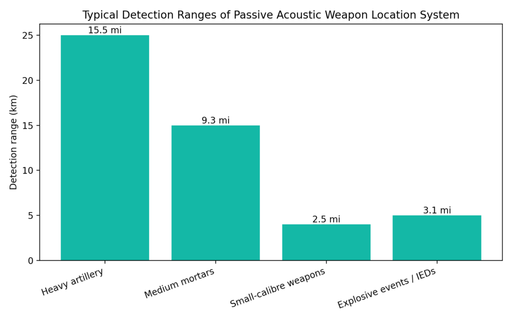 By enabling continuous monitoring without revealing sensor position, passive acoustic systems contribute to persistent situational awareness and counterfire capability even under contested spectrum conditions.